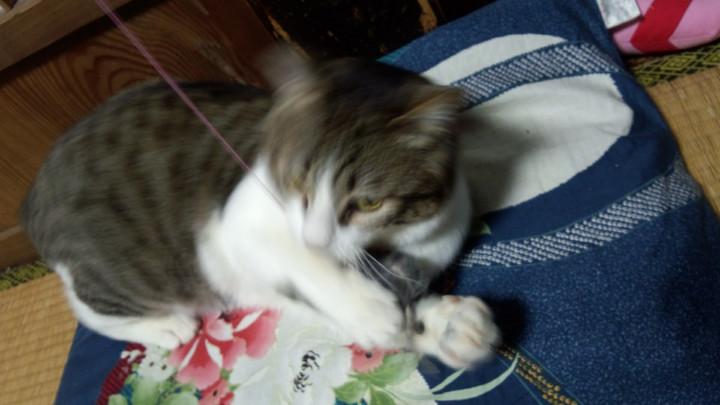 ブッコはネズミの猫じゃらしが大好きで、周りの毛皮が剥がれてもすごい食いつき。あれは毛皮に興奮しているのだと思っていたけど、実はあの形に興奮しているのかな。
