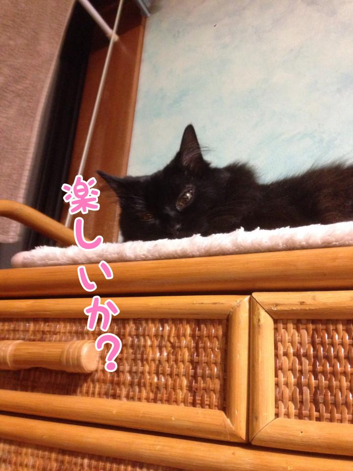 最近お気に入りの寝床に居たので、遊ぼうかと思い、きぃちゃんのそばに行きました。