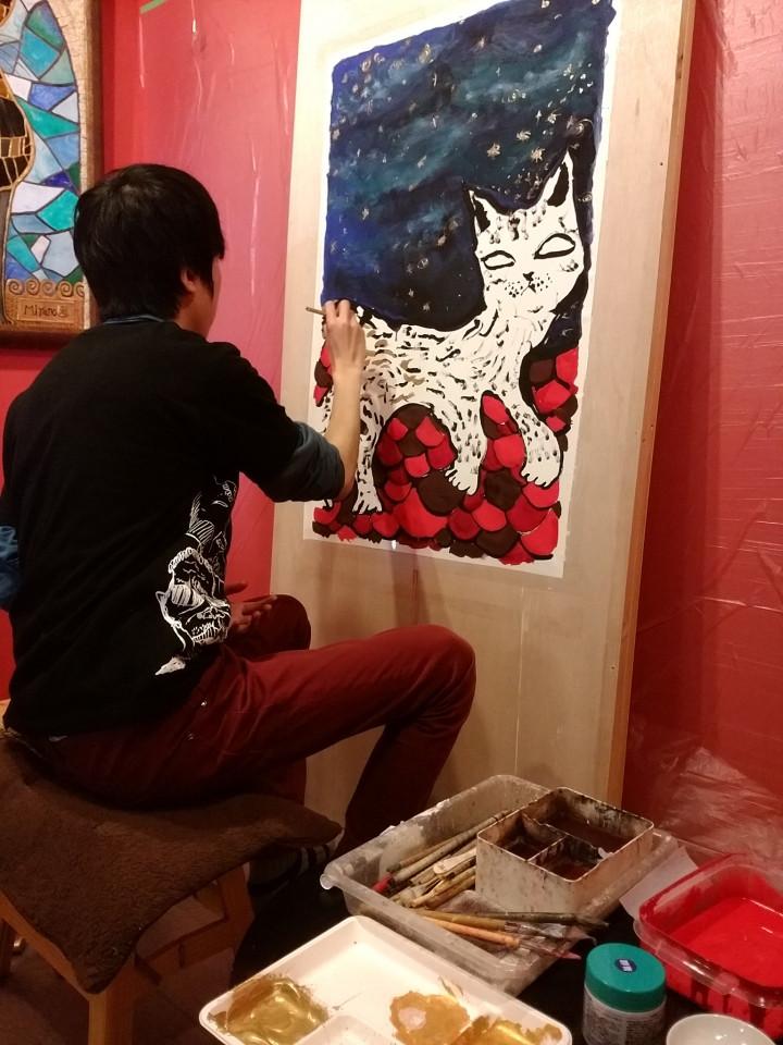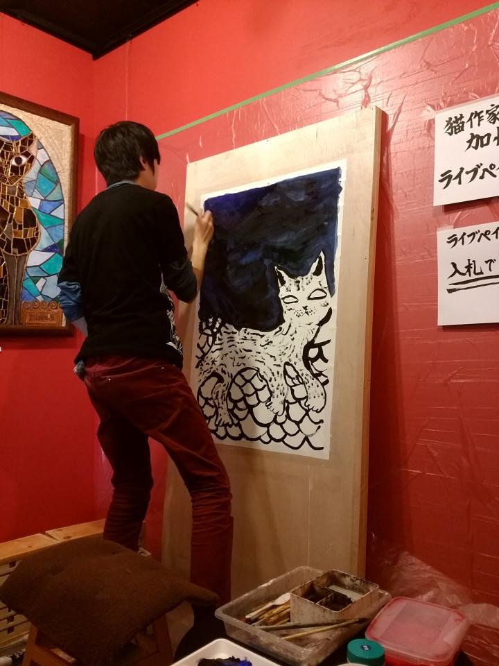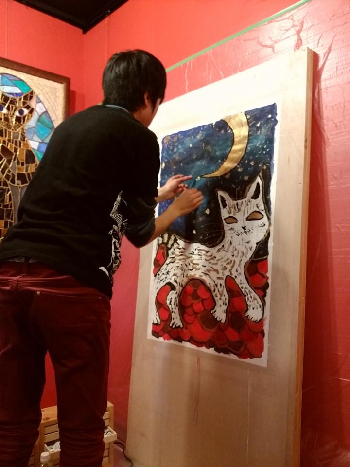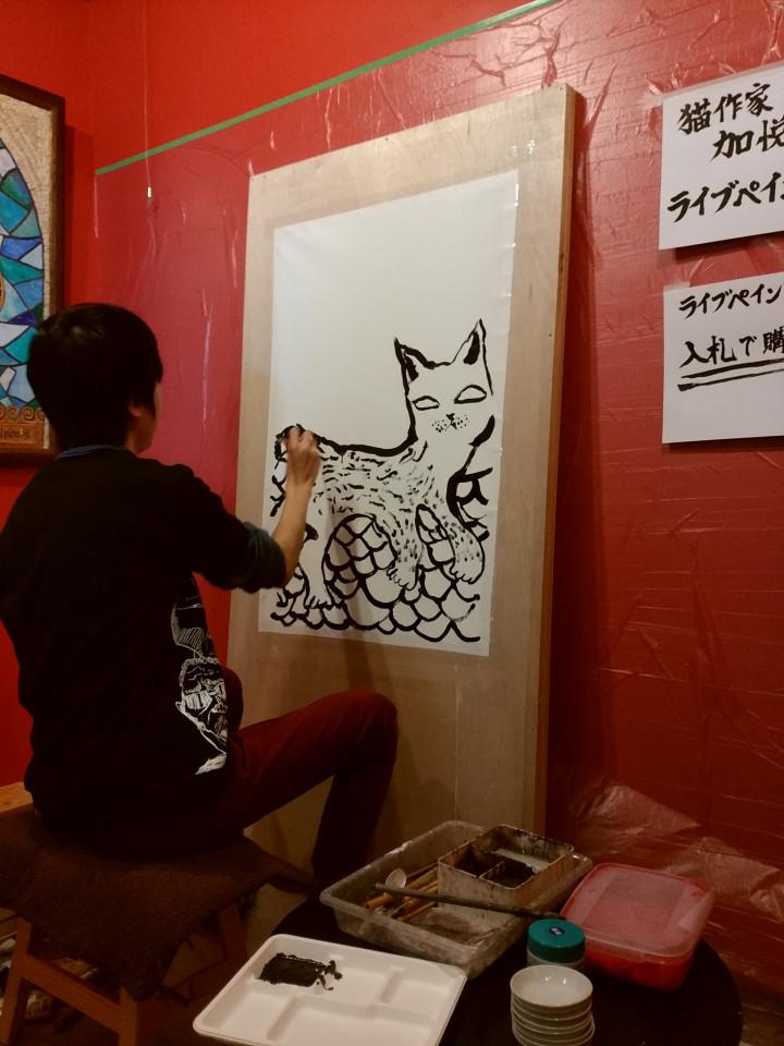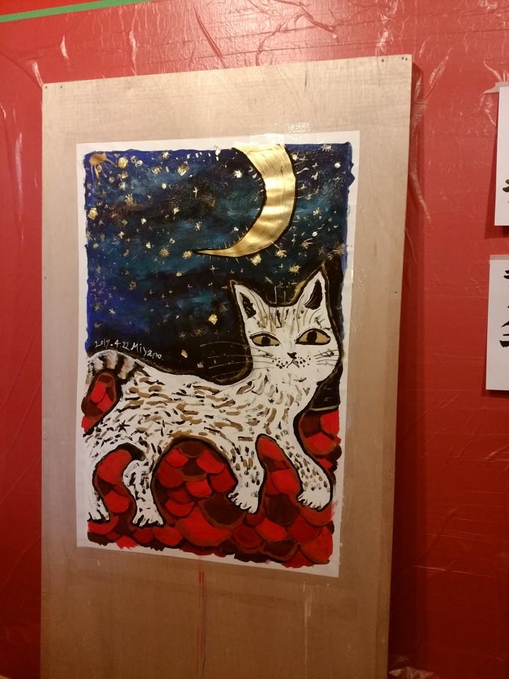 最初に鉛筆(だと思う)で猫の輪郭だけを