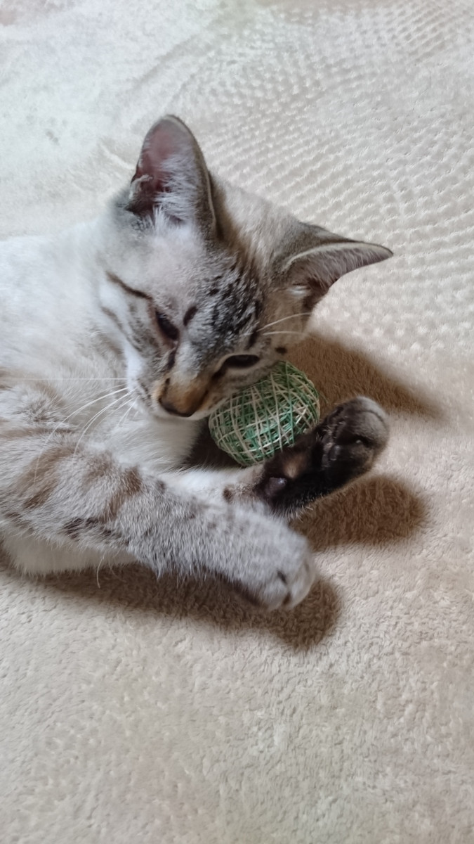 我が家に来た時に 貰ってきたボールでも遊ぶけれど、あちこちから色々な物を持ってきてオモチャに。