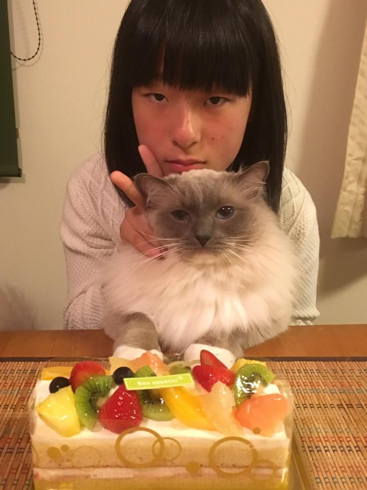 今日は、大好きな愛猫ヌリーと、バースデーケーキの前で 2ショット‼️