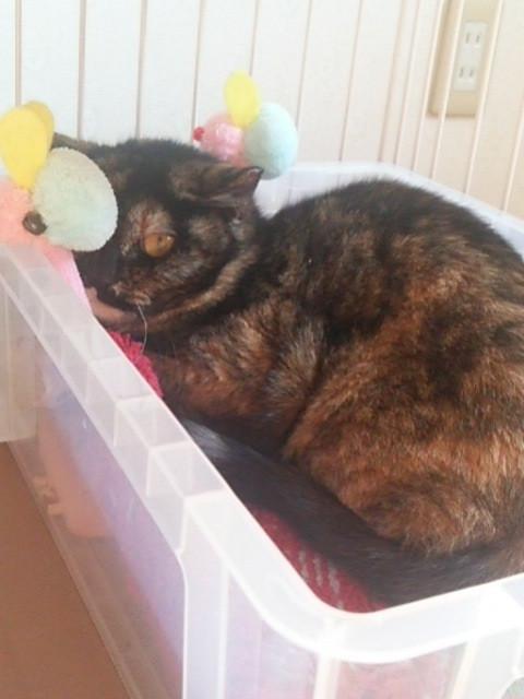 ケージの一番上の段に、子猫用のオモチャ(パンチして遊ぶもの)を置いていたのですが