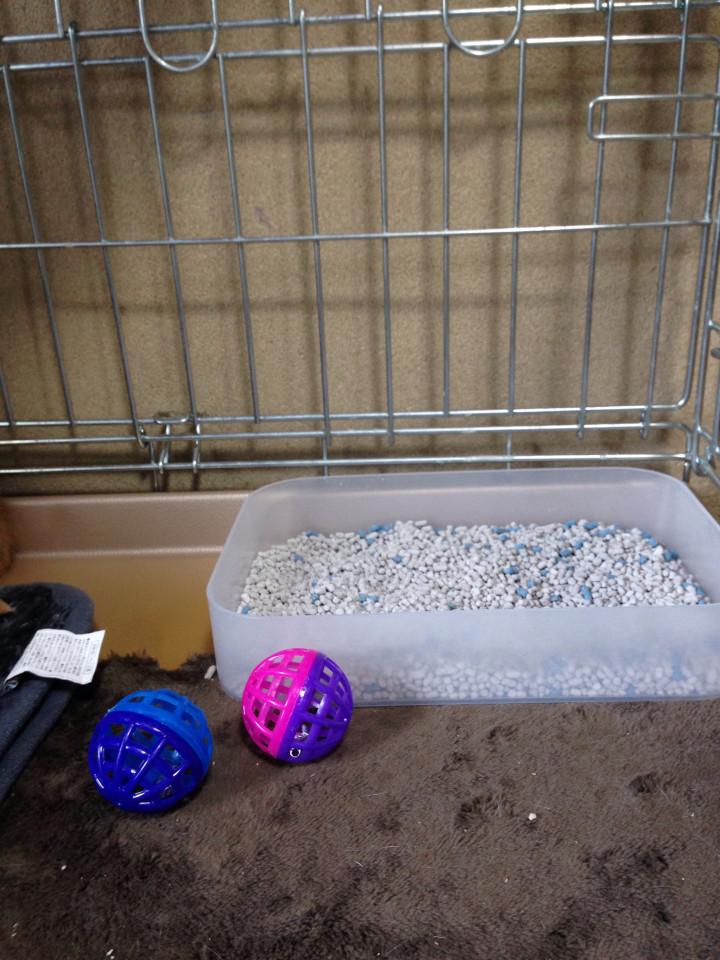 トイレとおもちゃも用意して、日中はこの中で過ごさせます。
