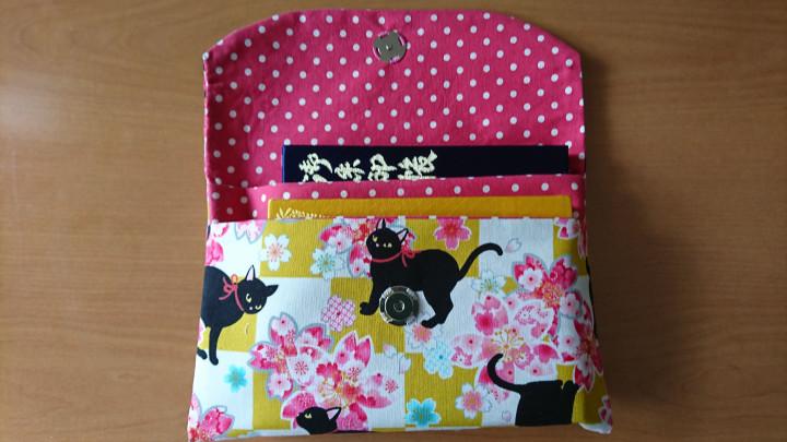 お友達に作ってもらった御朱印帳入れは、猫ちゃん柄です。