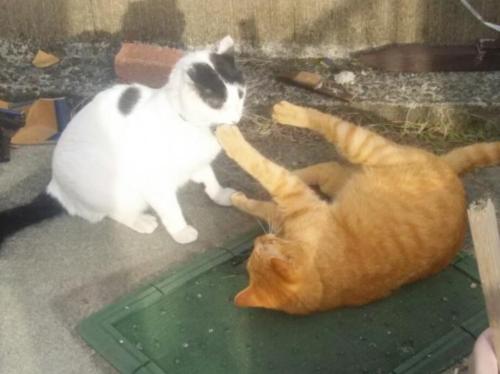 まずは、ちょっとイマイチな開き具合のまろ介とちょっと向こうにいてたまたま写った虎太郎との