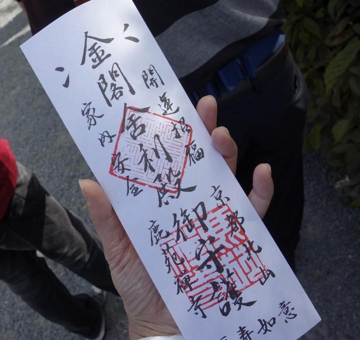 お菓子は山を背景にした金閣寺の屋根が描かれ、金箔が散らしてあります。