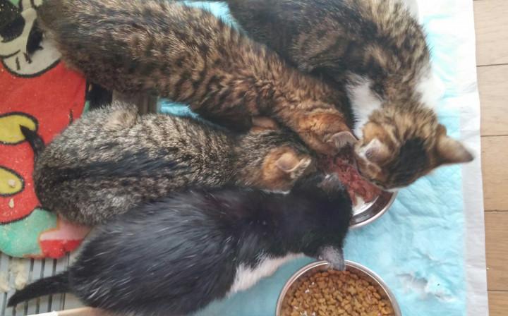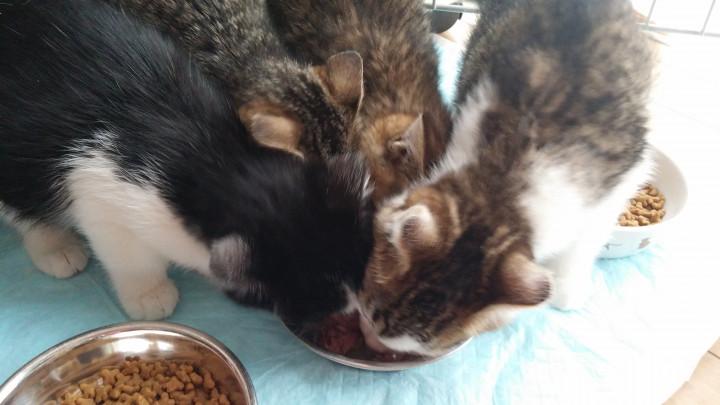 昨日の夜ごはんは、ウエット2皿カリカリ1皿にしたら、カリカリ人気でウエットが残ったので、朝は逆にカリカリ2皿ウエット1皿にしたら、ウエットに4匹集まったという図💦