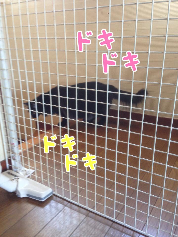 洗濯の準備をしてると、きぃちゃんが廊下に来て、座ってます。