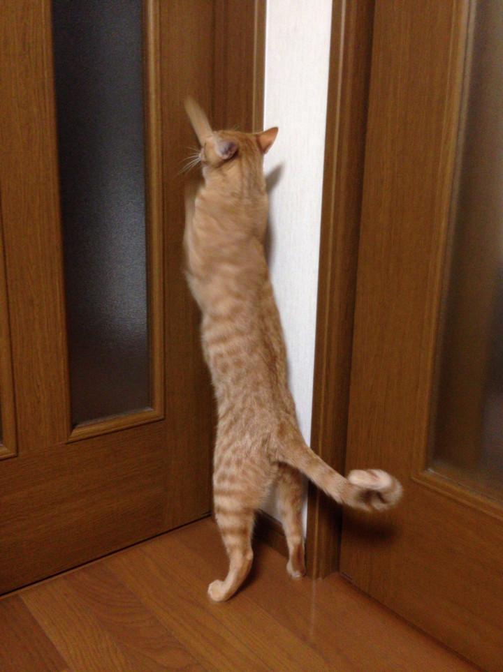 この向こうにある物入れにある大好きな猫じゃらしを取れと催促しているのです。