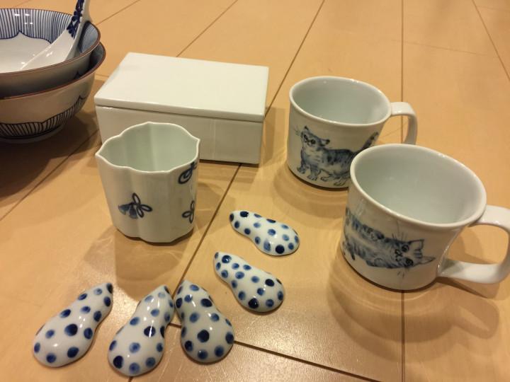 有田での購入したもの。ムート似のマグカップ、たくさんあるのについつい買ってしまいます(*´Д`*)