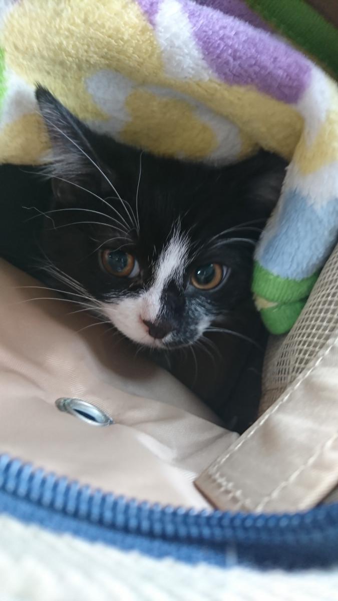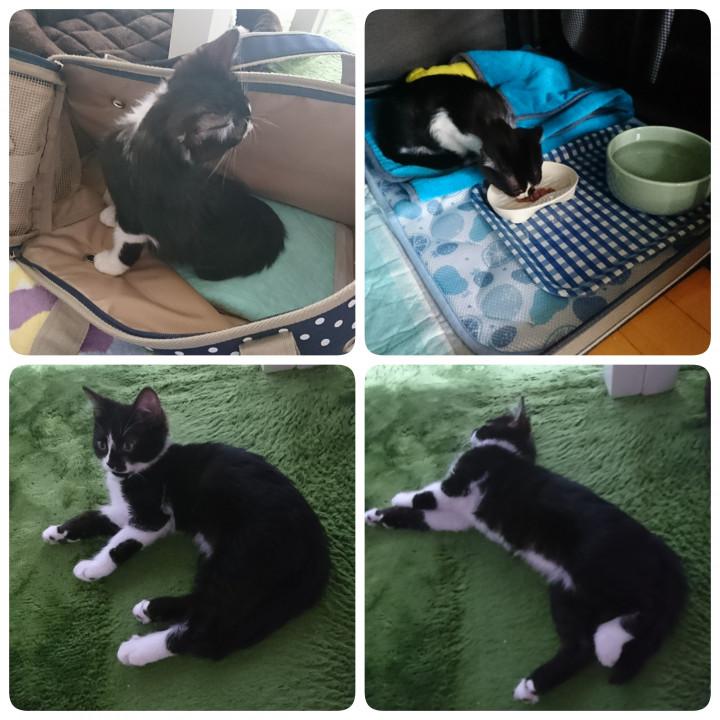 5/3に夫と車でお迎えに。初めてのお外でにゃあにゃあ鳴いてたけど、車に乗ってしばらくするとおとなしくなってくれてひとまずほっ。
