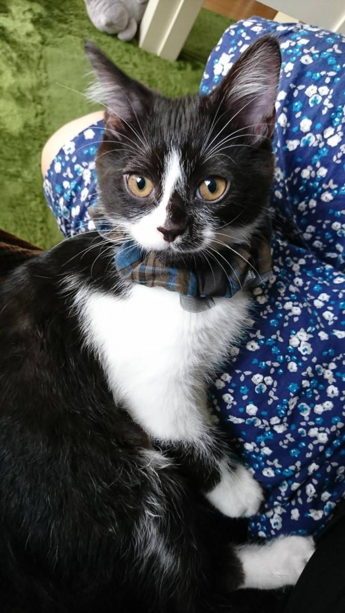 私のシュシュで首輪練習中。嫌がったらやめようと思ったけど、すんなり受け入れてくれたので様子見。子猫用の安全首輪を注文したので楽しみです。