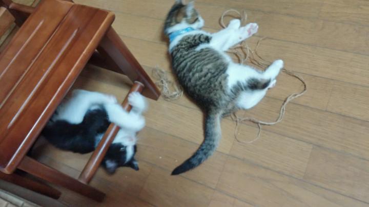 ひまわりが麻ヒモくわえて走るのをみんなで追いかける遊びをしてました。