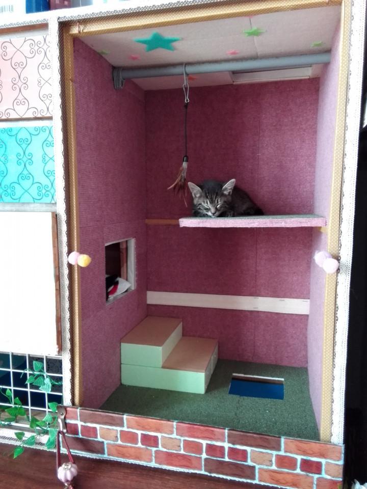 小さいからまだキャットタワーも一段目しか乗れないけど、ご飯いっぱい食べて大きくなってね🎵