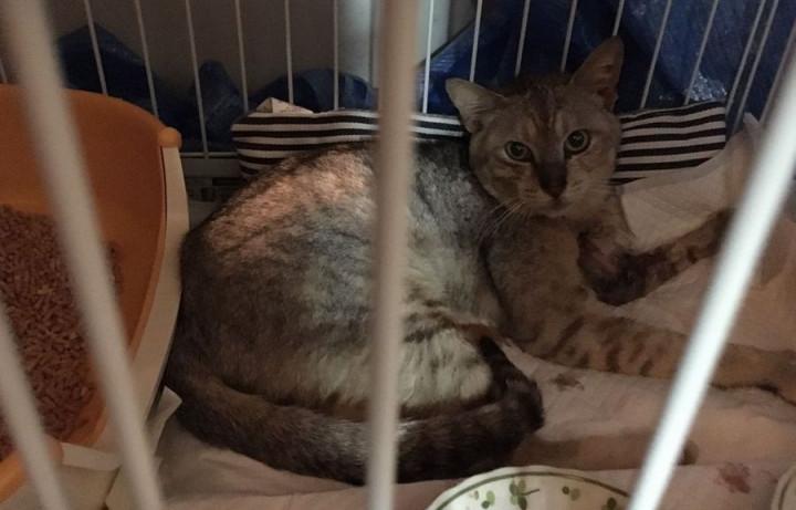 一週間ほど前、友人が雨の中マンションの駐車場でうずくまる前足をケガした猫を見つました。