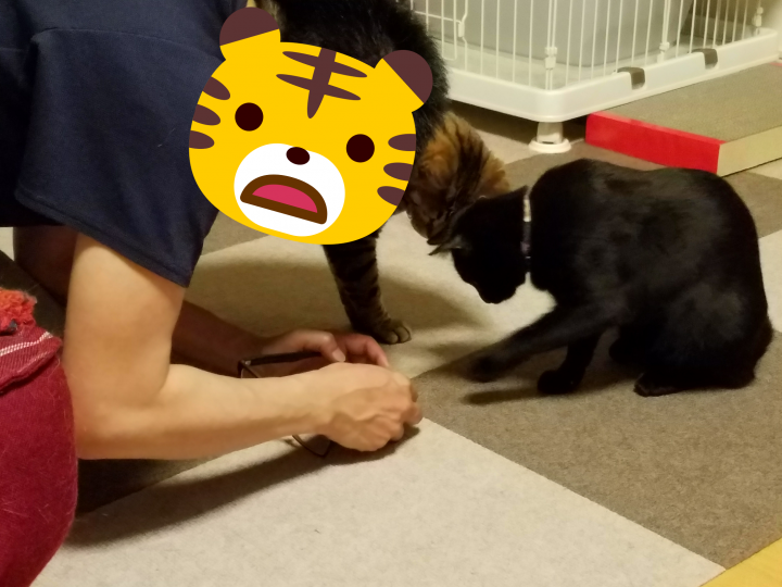 先日晩ゴハンのあとに、ニャンズが一ヶ所に集まってジーっとしてたんです。