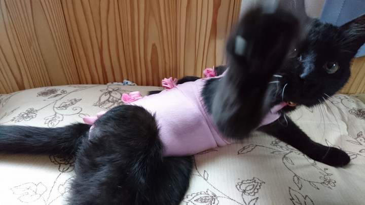 おててはいつも通りに猫パンチを繰り広げてくれるものの、後ろ足を動かすことに違和感があるのか…歩きません