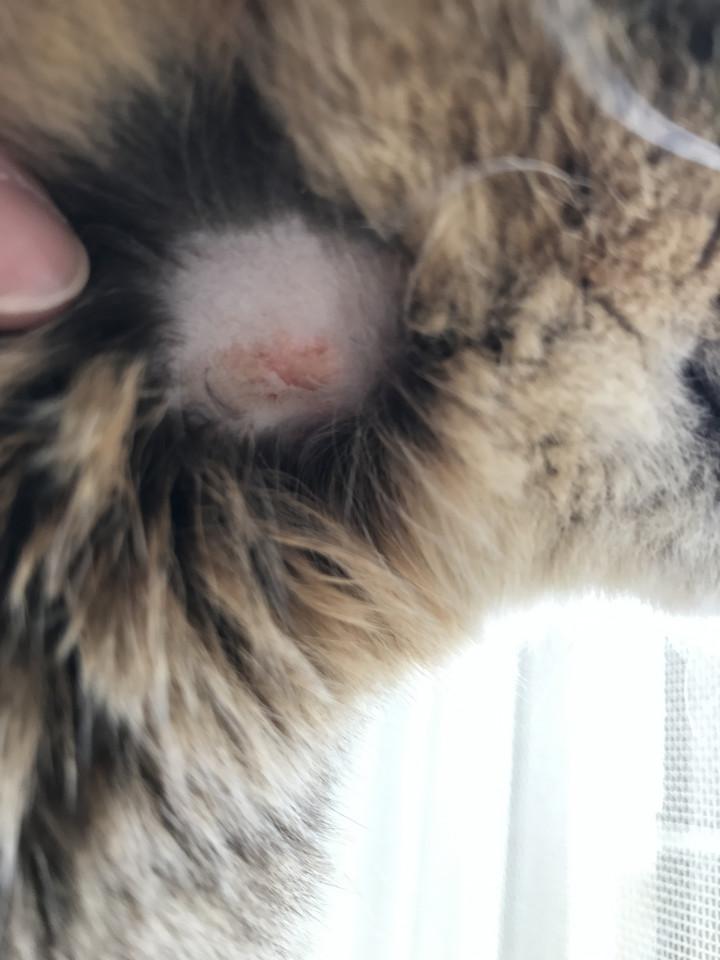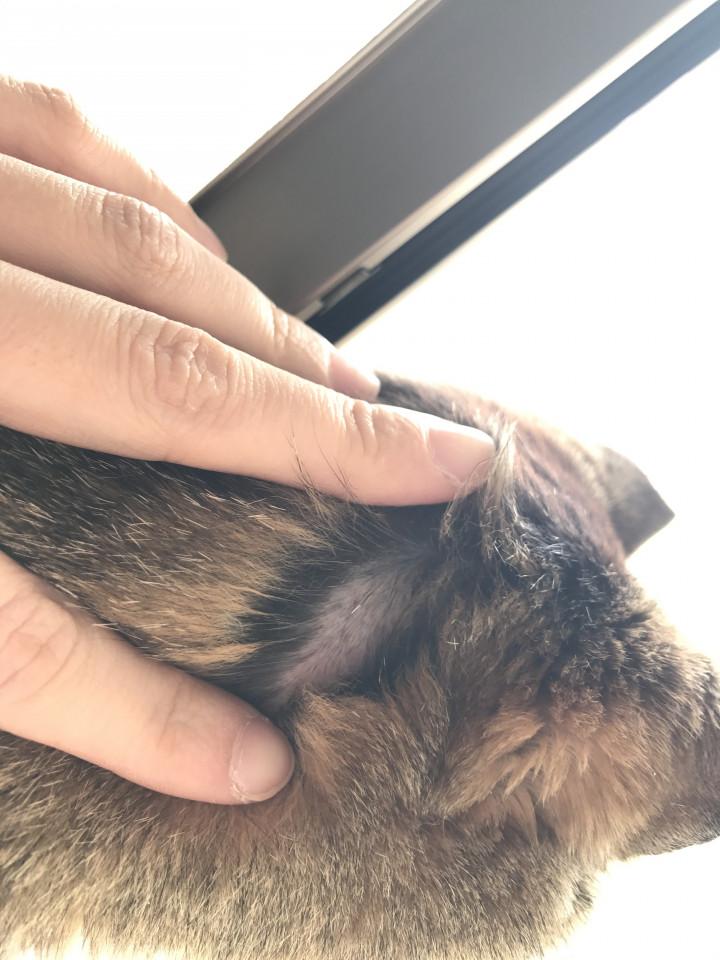 家で痒そうな感じは見られなかったので病院で塗り薬をもらいましたが、翌日に耳の後ろにも脱毛が…。