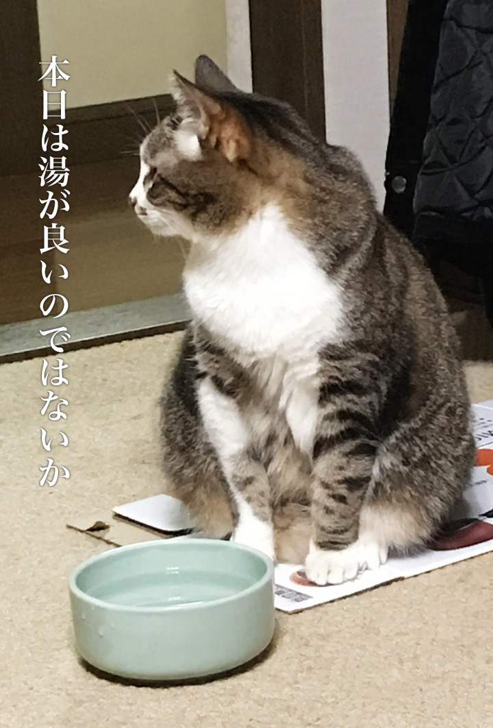 そんな時、みゅーさんが水の器の前でちょっと思案顔。