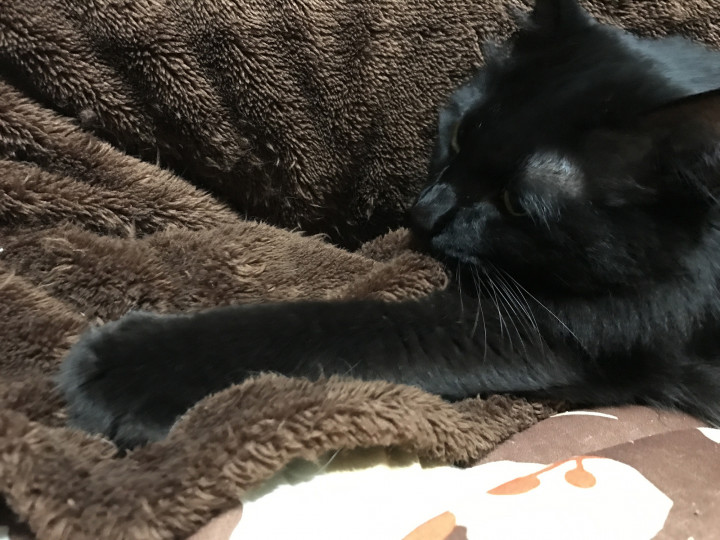 小刻みに毛布をモミモミしながらくわえた毛布をくっちゃくっちゃ。