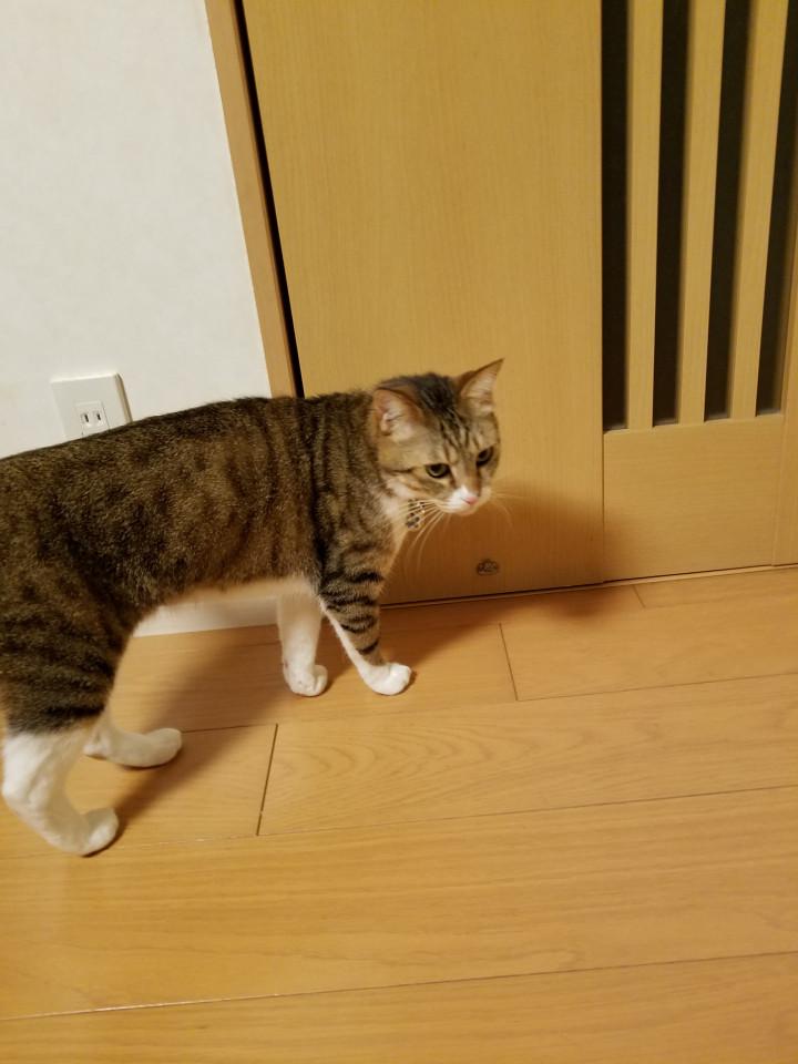 また人間がリビングを出るときにはものすごい勢いでついてくるようになったものですから、ドアにサクちゃんがはまされそうになるんです。