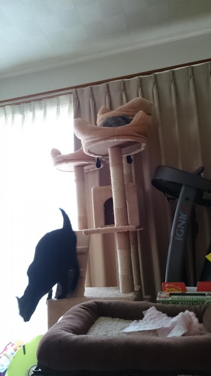 キャットタワーとケージの位置を入れ替えたいと思い付きガタゴト。