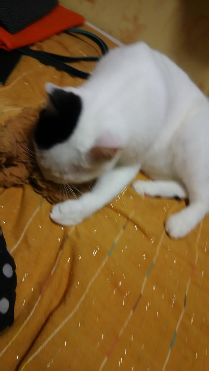この子が1Fにいて、あたしが2Fにいても獲物を見せつけるかのようにして2Fに得意気にくわえて持ってくるトイ。