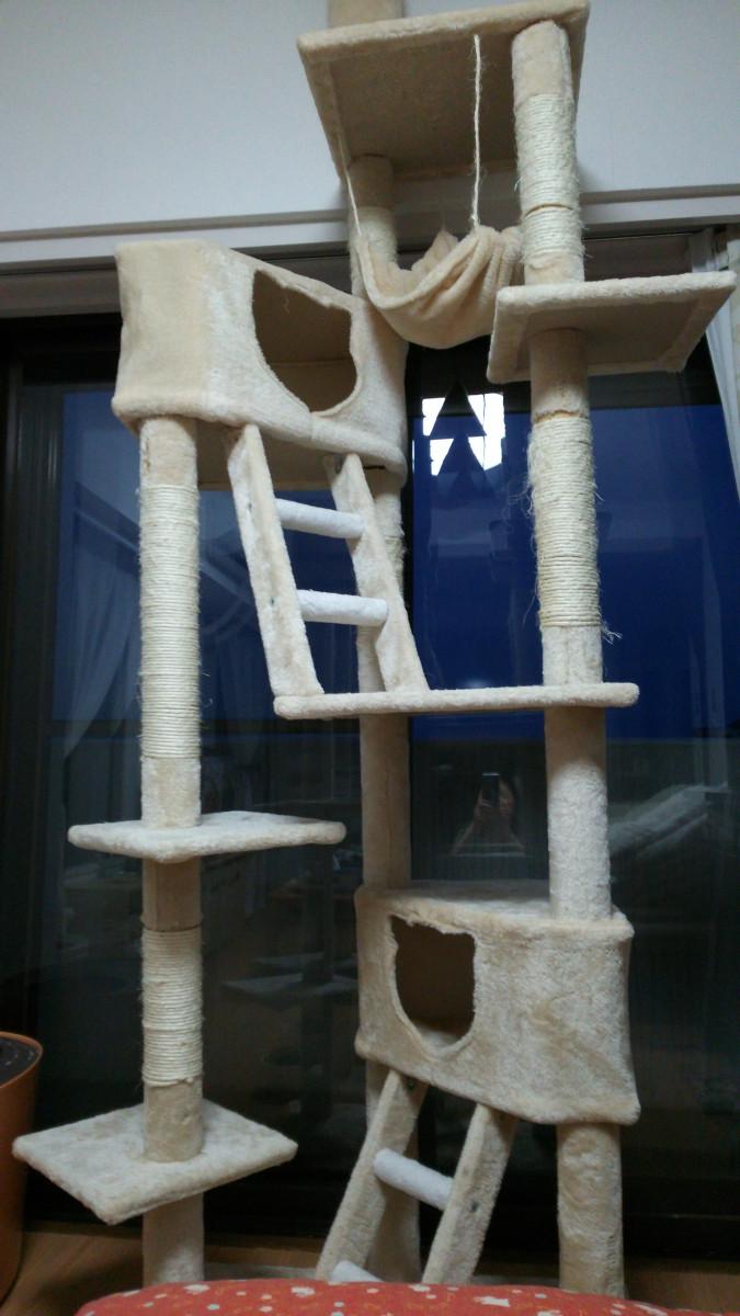 上の猫ハウスの位置を直しながら締め直したら真っ直ぐになりました。