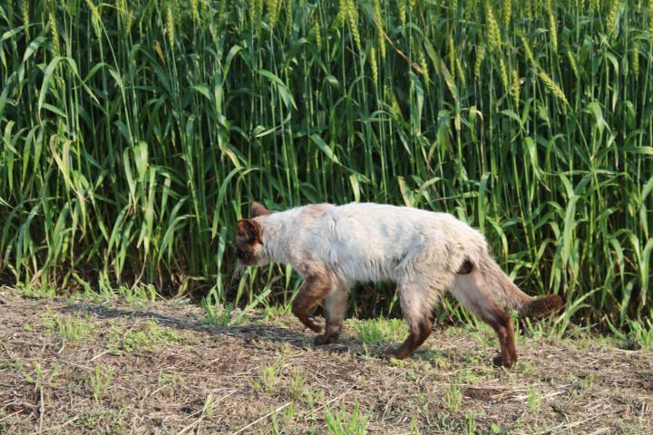 「帰って来る時、通りより一本北の道で白によく似た猫見たんだけど。」