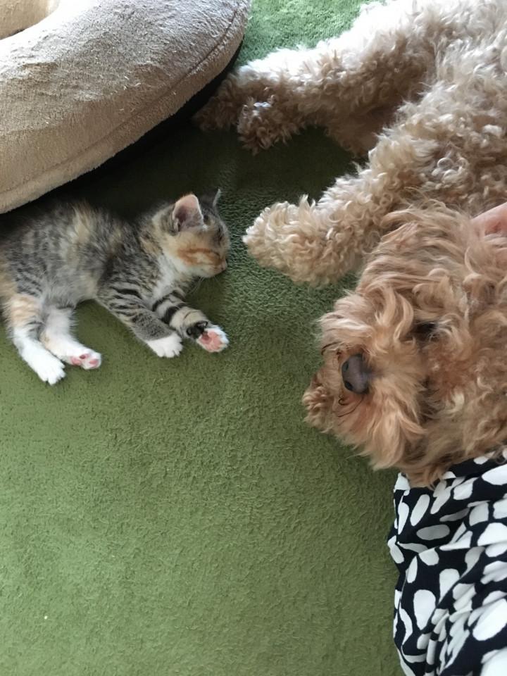こんなに荒々しい感じなのに、なぜか子猫に愛され続けるまめ君