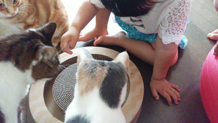 自分たちでコロコロ転がしてきを引いてみるも見てるだけ