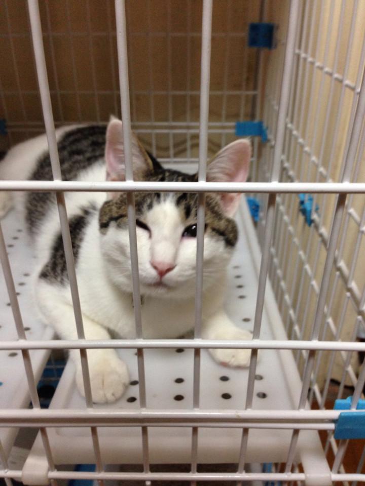 以前から、病院のスタッフの実家で2匹は引き取りたいとお話を頂いていて、出来ればダイとアンの兄妹2匹を一緒にとお話していましたが、アメショMIXのメイも、最近飼い猫が亡くなった病院スタッフのお友達の方に引き取られる事が決まりました。