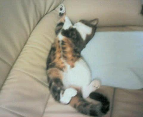 私のベッドに飛び乗って来た