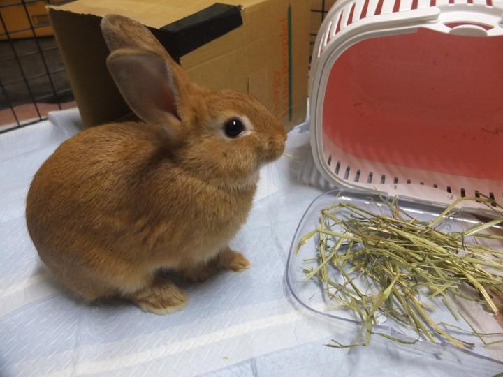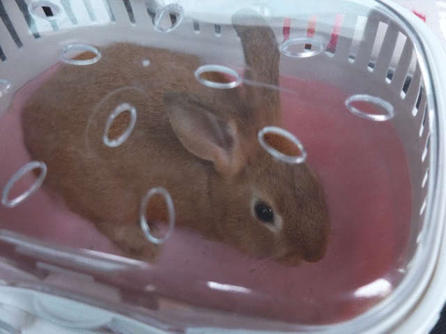 大学生3から、「ウサギ、預かってもいい?」と電話貰った時は「うちには狩る子がいるんだから、無理だよ」と断ったのだけど、大きいお弁当箱みたいなサイズのキャリ―の中にいる子の写真送られてきちゃって、この状態じゃあまりにも可哀そう・・・と「連れて来れば」と言ってしまったのです。
