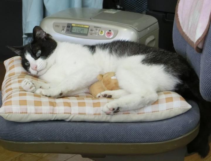 サナエさんはもこもこカバーを取った座布団が好きみたい。