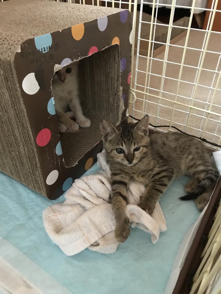 今、私が里親募集している子猫は、私の家の前の空き家に野良猫が生みました。母猫はまだ小さくて、たぶん、1歳くらいだと思います。避妊手術を受けてもらった時、病院の先生が「おそらく、初めての出産だろう。」と言っていました。そんなまだ子猫に毛が生えたくらいの猫さんが出産して、一生懸命、子育てしていました。子猫を保護して、母猫は私の家に子猫がいるとわかっているのか、初日の夜は我が家のガレージで子猫を呼ぶかのように鳴いており、それに答えるように、子猫も鳴いていました。私が子猫を母猫から取り上げてしまったんだ…と、悩んだ時もありましたが、母猫がガレージで鳴いたのは1日だけでしたので、きっと私に子猫の行く末を任せてくれたんだなと勝手に解釈しています笑