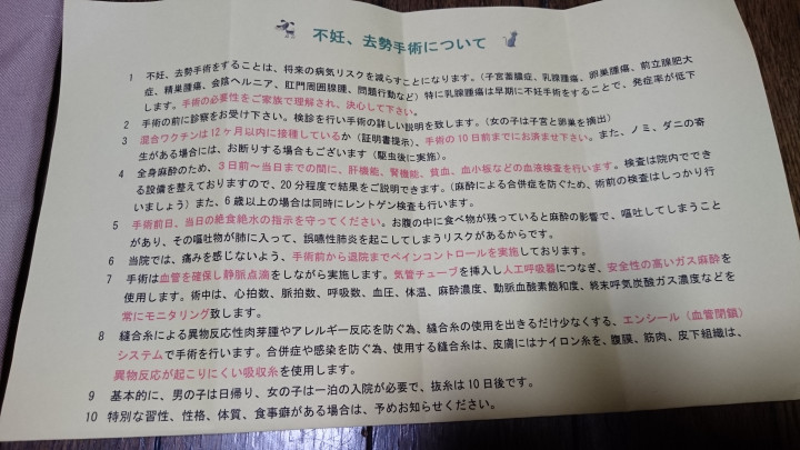 土曜日に病院で色々と説明を受けて来ました。