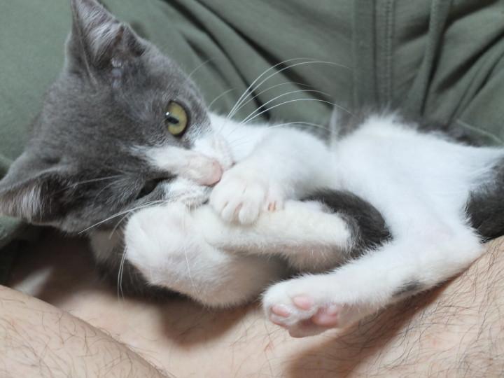 白トラは甘えることはあっても膝にのることがないから、チーの甘えっぷりにはもうメロメロ。