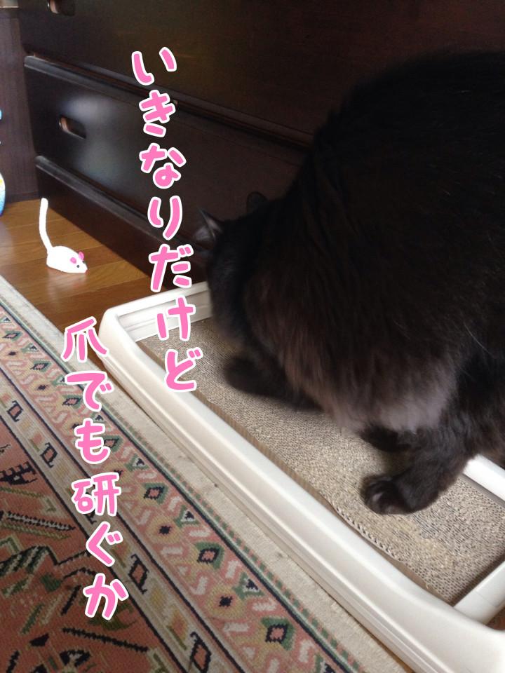 だってニャ〜 爪とぎがニャったニャャだからね😸(爪とぎがあったから)