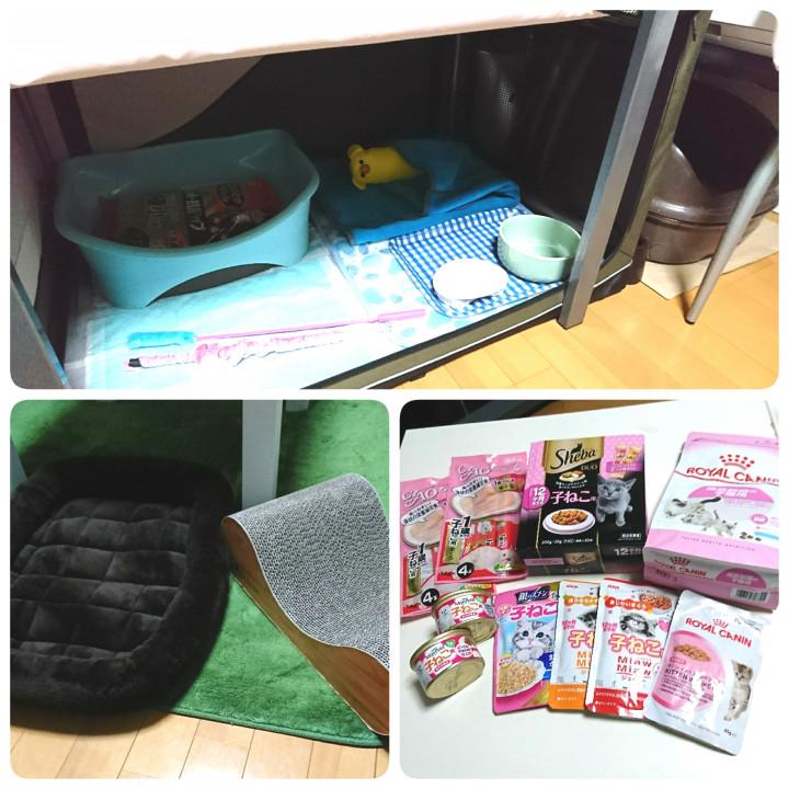 左下:昨日3coinsで買ってきたばかりの猫パペット。いろんなところをガジガジしてるし、私の手や足にも噛みついてくるので試しに買ってみた。喜んでガブガブしてるけど、これでいいんだろうか…w猫柄の涼感枕カバーはケージの中に敷いてあげる用、おまけの猫柄エコバッグは私用。