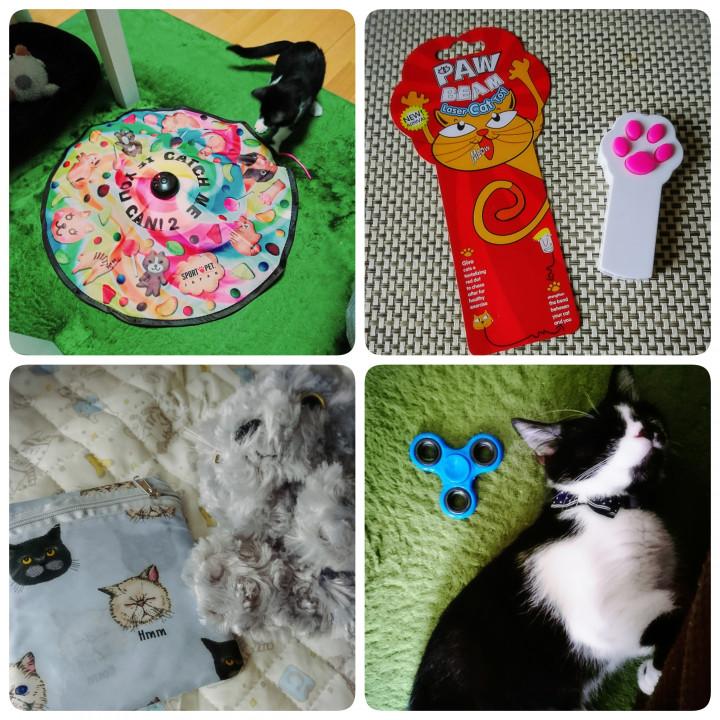 左上:Amazonでベストセラーになってるキャッチミーイフユーキャン2。私の仕事場の猫飼いさんに勧められたんだけど、これは買ってよかったー!食事の支度時など相手してあげられない時にはほんと助かる。最近は最初ほど夢中にはなってくれないけどw