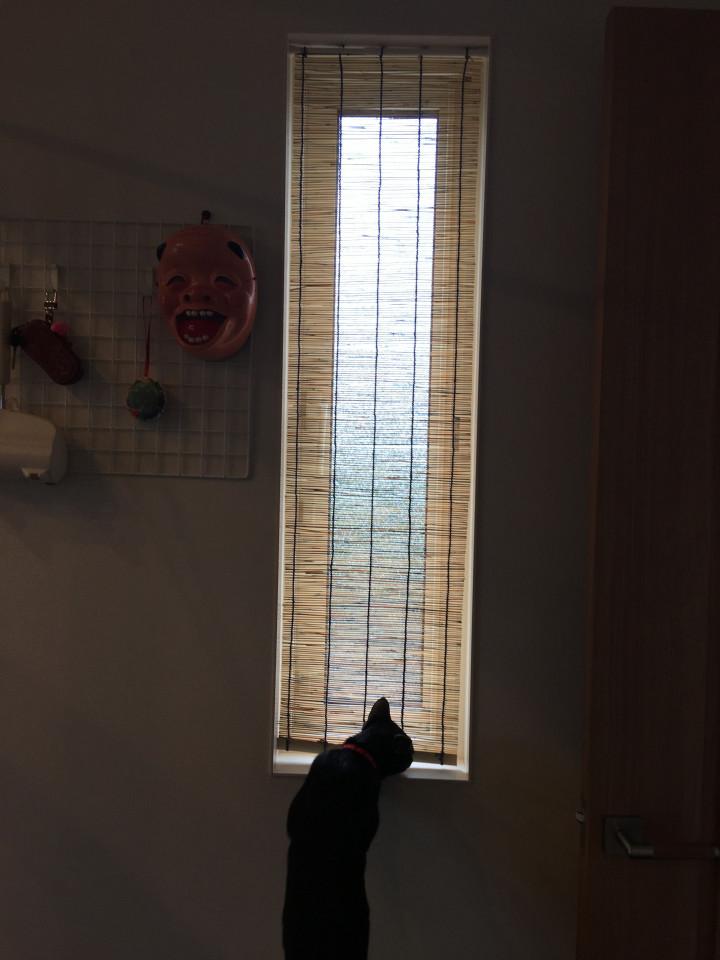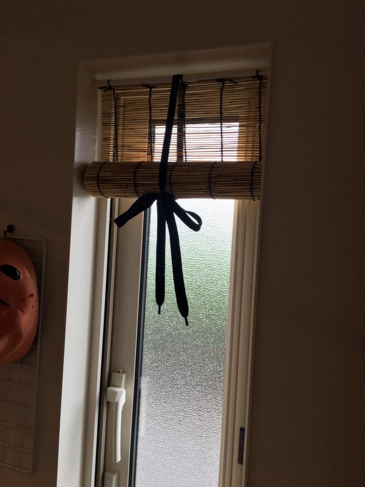なので100均で簾と突っ張り棒を買い チョキチョキ✂️寸法合わせ 結束バンドで突っ張り棒と合体!