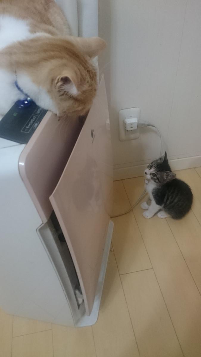 『私はどかないわよ(ФωФ)。』と、アイコンタクトかしら。