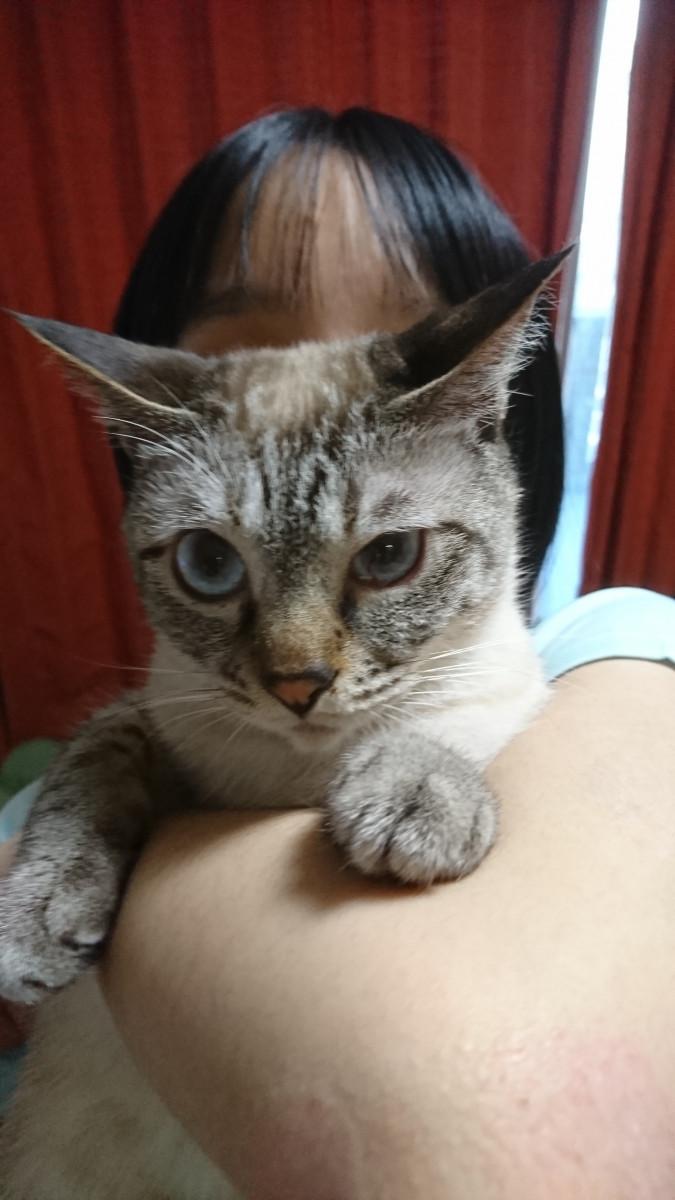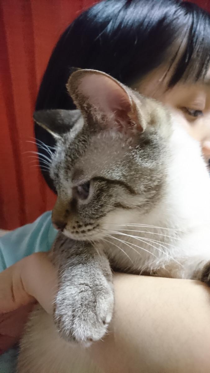 抱っこが苦手な瑠花、イカ耳さん。この日は目の調子も悪そうですね。
