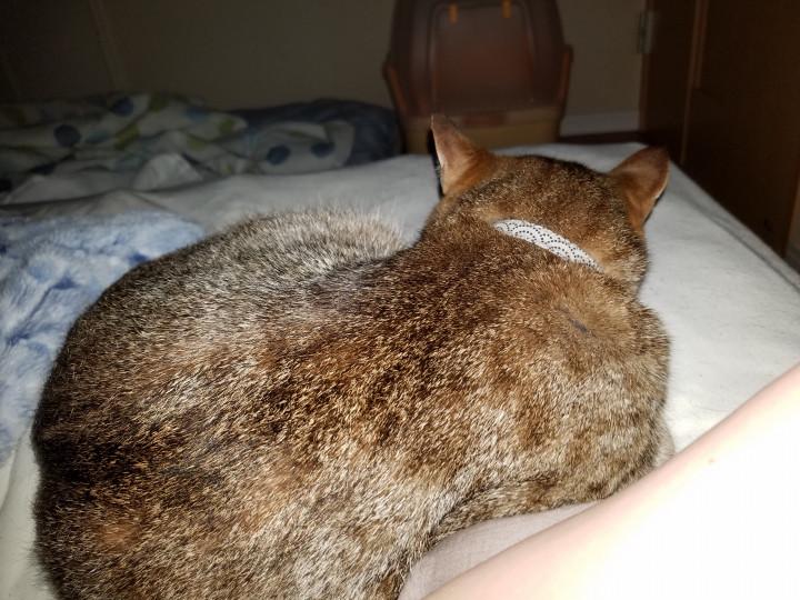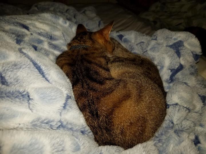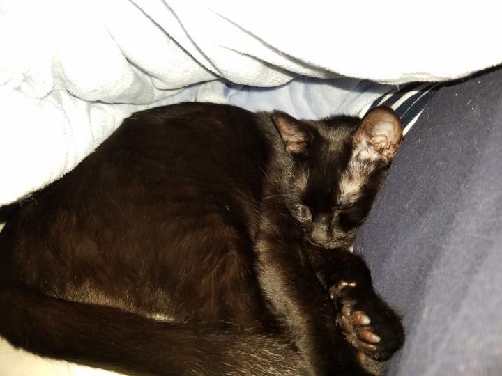 ポンちゃんがカリタの布団に入ってきて、そのまま寝ようとしてました❤