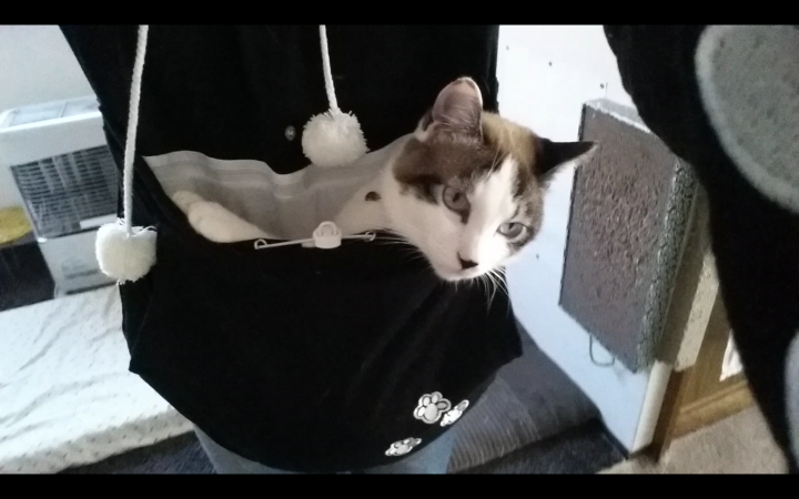 だらしなく脱ぎ捨てている飼い主のパジャマの匂いを嗅ぐ猫ももちゃん。の巻