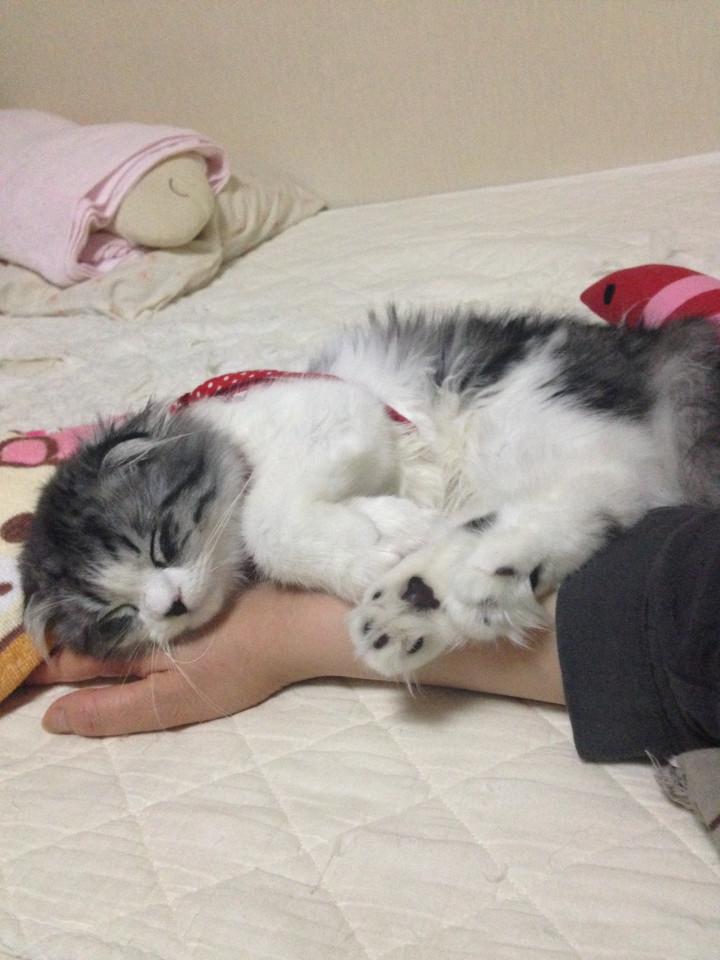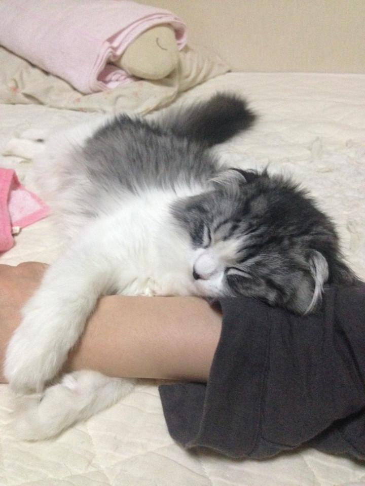うん〇の写真を載せる訳にもいかないので、先日腕枕で寝てた写真を♪(*´艸`*)
