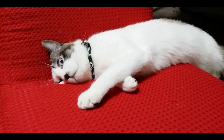 だらしなく脱ぎ捨てている飼い主のパジャマの匂いを嗅ぐ猫ももちゃん。の巻