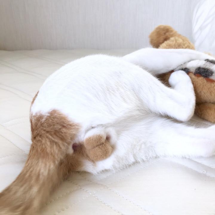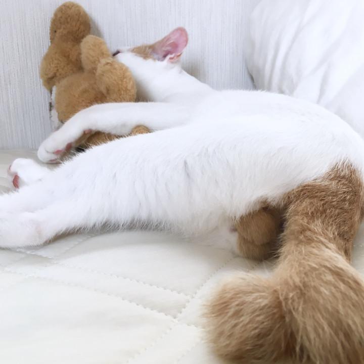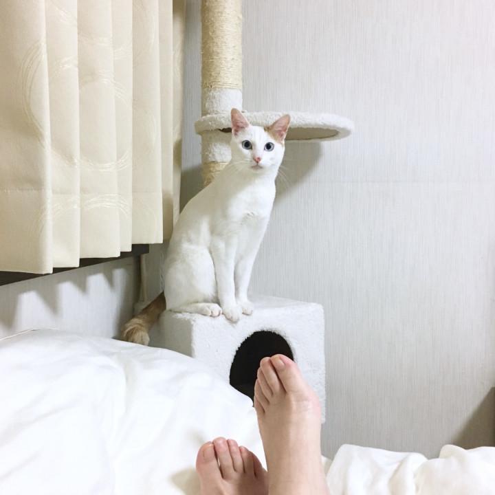 寝ている私の足指に飛びつき