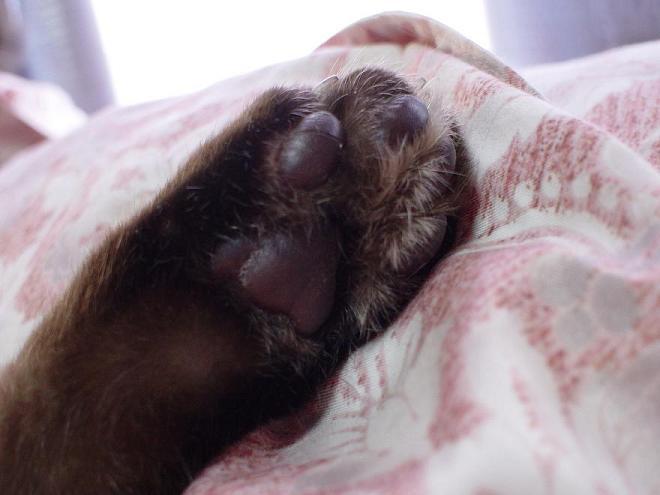 嬉しいから、我が家で一番可愛いものの一つ、あるばの肉球をドアップでアップだ!